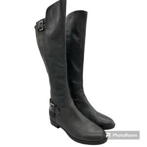 Marc Fisher Damsel Tall Shaft Leather Riding Boots Dark Grey Sz 7 Office Minimal
