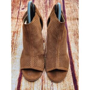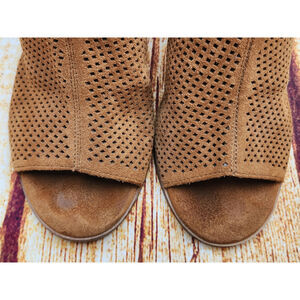 Marc Fisher Demika Bootie Heel Perforated Suede Open Toe Sandal Boot Size 8.5