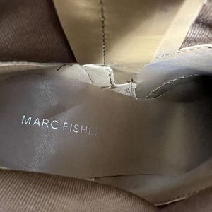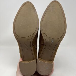 Marc Fisher Dyvine Pointy Toe Block Heel Ankle Booties Tan Brown Suede Zip Up Side Zipper Heeled Boots