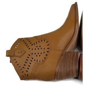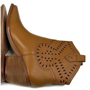 Marc Fisher Elyma Pointed Toe Western Tan Leather Booties Womens 8.5M New $199