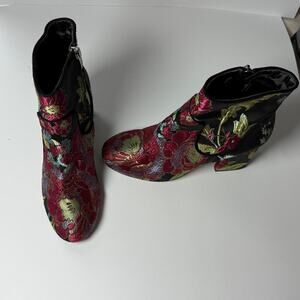 Marc Fisher Embroidered Brocade Jana Ankle Boots 7.5M Floral Block Heel