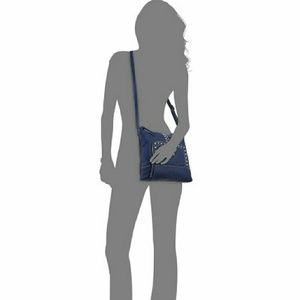 Designed with a spacious interior and a convenient crossbody strap, this casual bag brings fashion to the forefront with rows of studded accents.