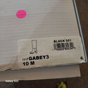 Marc Fisher Gabey Boots. Black. Leather. NIB. Size 10. No rips/stains/scuffs/tears/peeling. NIB/Original box/packaging. Gorgeous. Box has very minor damage. Boots are perfect. Smoke free home. No odors. All offers are welcome. Thank you!