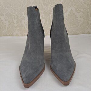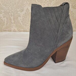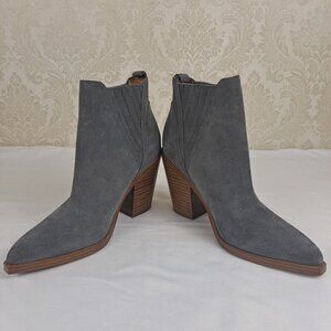 Marc Fisher Gadri 7M Gray Suede Booties Pointed Toe Chunky Heel Pull On NWOT