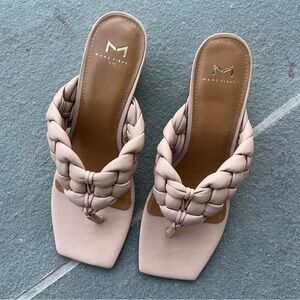 Marc Fisher Galynite Light Latte Braided Square Toe Heeled Sandals Size 8M