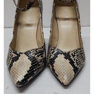 Marc Fisher Gilla 2 Snakeskin Pointed Toe Block Heel Ankle Strap Pumps Size 10M