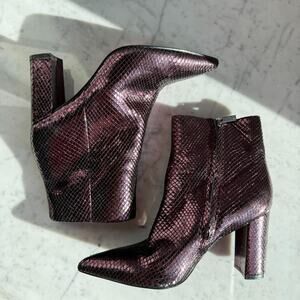 Marc Fisher Glam Metallic Violet Snakeskin Ankle Boots – Size 5.5