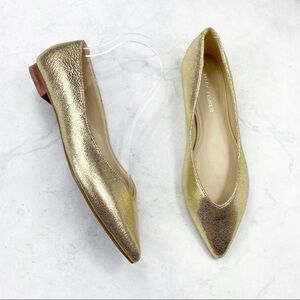 Marc Fisher Gold Analia Pointed-Toe Leather Flats. Slip On Style. Stacked Heel. Super Cute & Comfy. No Stains or Rips. New. Never Worn.