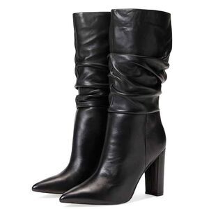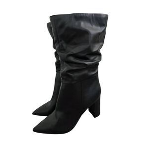 Marc Fisher Gomer Size 10 Women Black Heeled Boot Pointed Toe Block Heel Slouchy