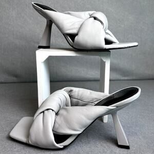 Marc Fisher Gray Leather Slip On Party Wedding Holiday Evening Sandal NEW Size 8