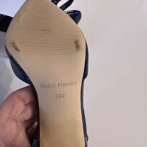 Marc Fisher Hadya Dark Blue Patent Slingback Pointed Toe Heel 7.5 Like New