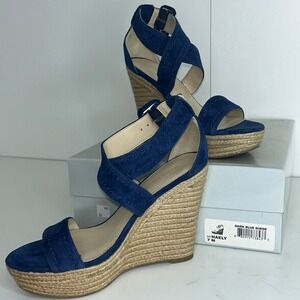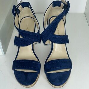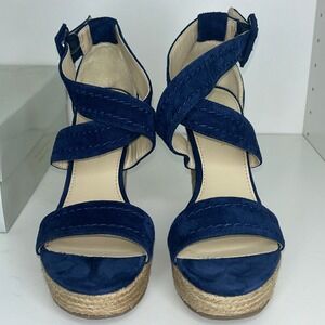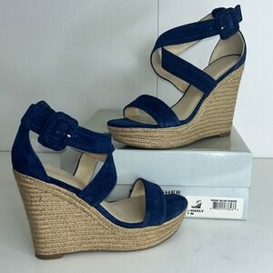 Marc Fisher Haely Espadrille Wedge Sandals Dark Blue Suede Women's Size 7M