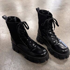 These are a great dupe of the Prada Monolith boot (minus the removable pouch detail on the Prada boots). Please note: I am not advertising these as Prada boots - I am simply stating they are VERY similar in style.