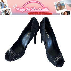 Marc Fisher Harpy Black rhinestone Studded Black Peep Toe Heels 7M