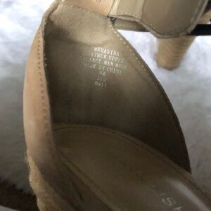 Marc Fisher Hasina Espadrille Suede Wedges 9 Tan Open Peep Toe Cutout Buckle