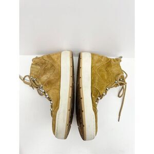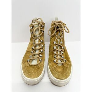 Marc Fisher High Top Sneaker Size 8.5 Fur Lined Tan Suede Lace Up Winter Booties