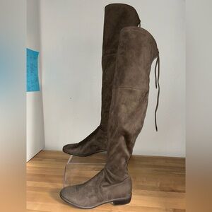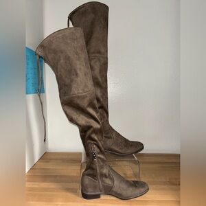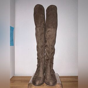 Marc Fisher Humor 2 Fabric Almond Toe Over Knee Fashion Boots Gray Brown Sz 6.5M