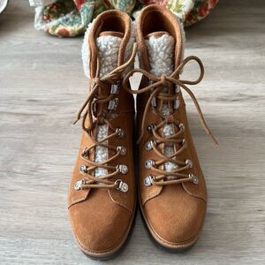 Marc Fisher Isalia Boots Tan Suede Sherpa Lug Sole Women’s Size 8.5
