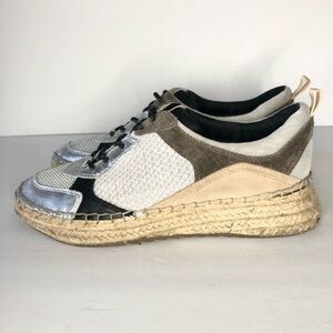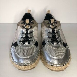Marc Fisher Janette 4 Espadrille Silver Metallic Leather Lace Up Sneakers 8.5 M