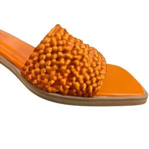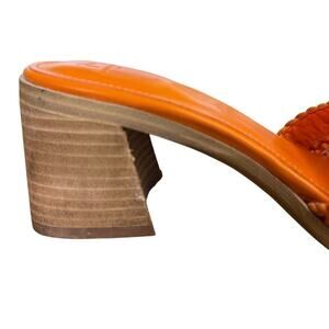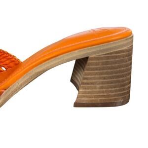 Marc Fisher Jaxxon Sandals Orange Woven Chunky Block Heels Slides Shoes sz 7 M