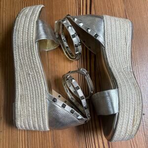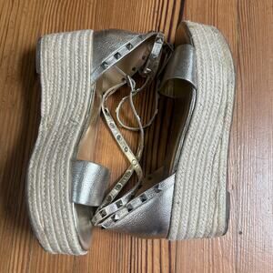 Marc Fisher Jazlyn gold platform espadrille wedge studded sandal SIZE 9.5