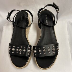 Marc Fisher Joyce Studded Espadrille Platform Sandal Black Silver Size 6
