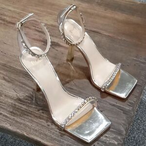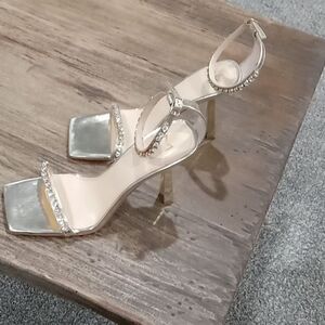 Marc Fisher "Karima" 4" stiletto heel square toe sandal. Rhinestone detailing with ankle strap size 7 NWT