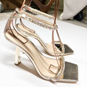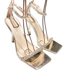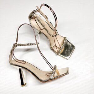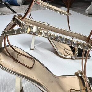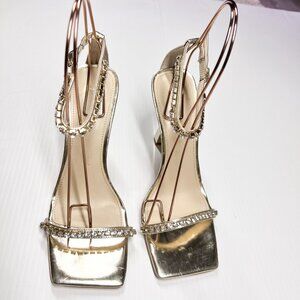 Marc Fisher Karima Heeled Rhinestone Straps Sandals Size 8.5 Gold