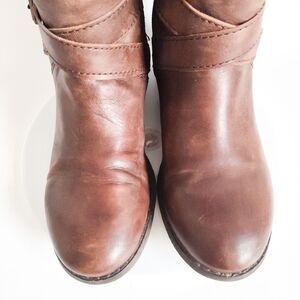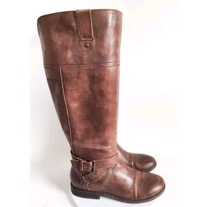Marc Fisher Knee High Tall Riding Boots Size 5 Brown Vegan Faux Leather Preppy