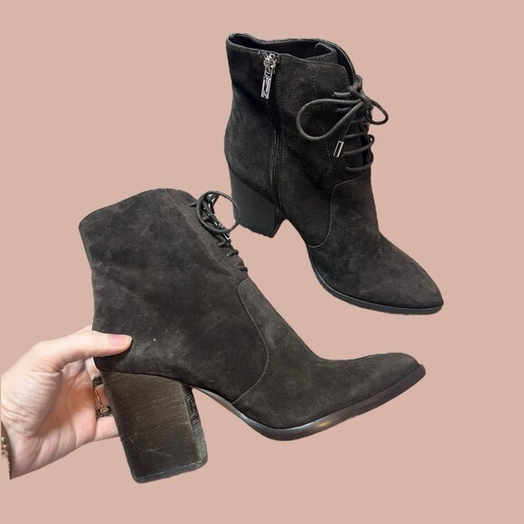 Marc Fisher LTD Aaliyah pointy toe lace-up bootie in dark Brown Size 10