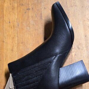 Step out in timeless sophistication with these Marc Fisher LTD Alva Ankle Boots in Black Leather. Crafted from premium genuine leather, these boots feature a sleek pointed toe, elastic side panels for easy slip-on wear, and a sturdy block heal for style and stability.