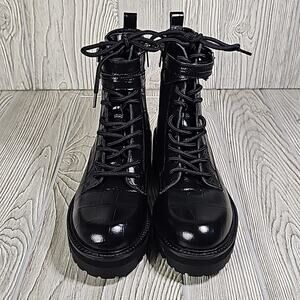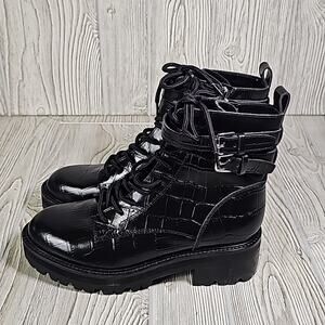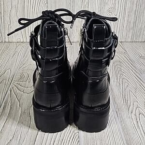 Marc Fisher LTD Barren 2 Black Croco Leather Combat Boots Womens 6 NEW