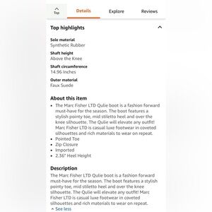 • The Marc Fisher LTD Qulie boot is a fashion forward must-have for the season. The boot features a stylish pointy toe, mid stiletto heel and over the knee silhouette. The Qulie will elevate any outfit!