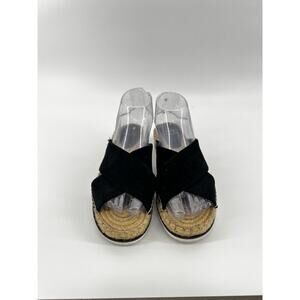 Marc Fisher LTD Black Suede Espadrille Platform Slide Sandals 6.5M