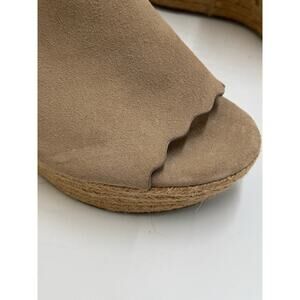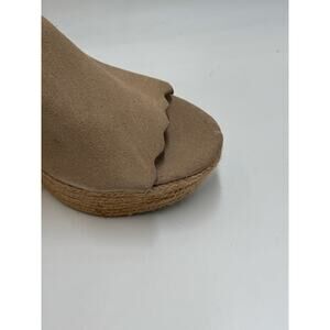 Marc Fisher LTD Fia Scalloped Suede Espadrille Platform Wedges Tan 8M
