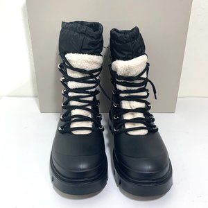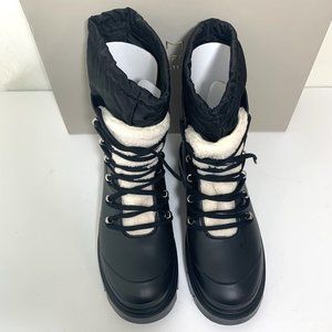NEW Marc Fisher LTD Freely Boots Lace Up Faux Fur Lug Sole Booties Waterproof Black Size 9 NIB