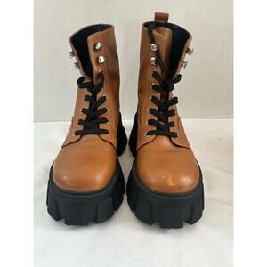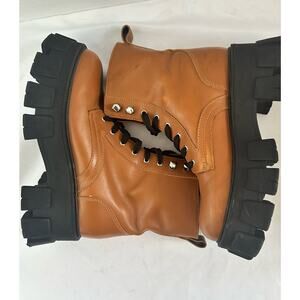 Marc Fisher LTD Happy Leather Boots Lace up Combat Tan Size 5.5