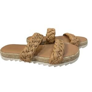 Marc Fisher LTD Jaimee Flat Espadrille Slip on Sandals Size 7 Tan Leather Casual
