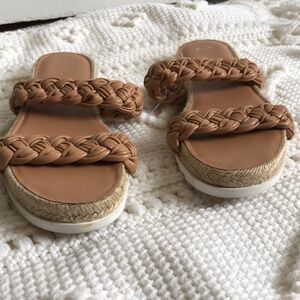Marc Fisher LTD Jaimee Tan Leather Double Braided Espadrilles Sandals Shoes 7.5