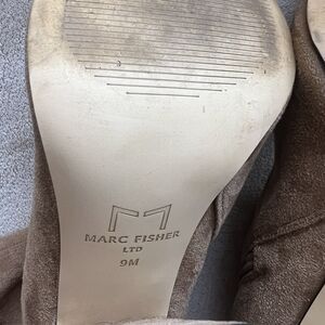 Marc Fisher LTD Larry Sock Ankle Boot Women 9 M Tan Faux Suede Pointed Toe Block