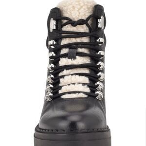 Marc Fisher LTD Nauru Women’s Black Natural Leather Lace- Up Bootie. Leather & Faux Fur Shearling Upper, Lace- Up with Metallic Eyelets, Almond toe Appox 10” leg opening /.75” block heel. New without box. Size 7.5