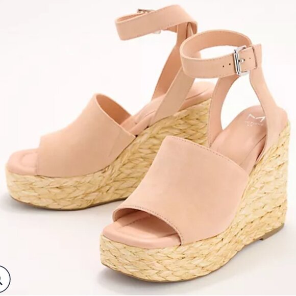 Marc Fisher LTD Nelly Ankle-Strap Suede Wedge Espadrilles Pale Blush Size 10