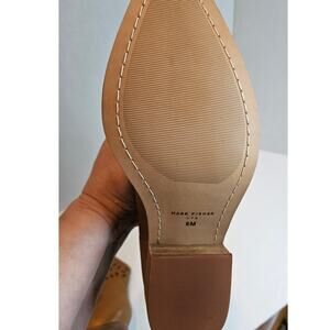 Marc Fisher LTD Women's Western Ankle boot, Pointed toe. Chunky Block heel, Smooth Leather with decorative cut outs. Twin pull tabs bring Western inspired style to the boot raised on a walkable stackable heel. 2.5" heel, 5.5" shaft. Leather upper/synthetic lining and sole. New has one manufactured issue, see last pic.-store display?