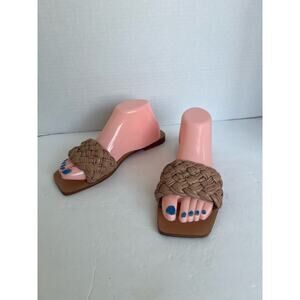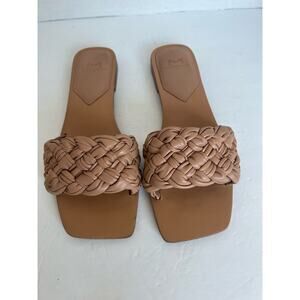 Marc Fisher LTD Reanna Tan Leather Women’s Braided Woven Slide Sandals Sz 8