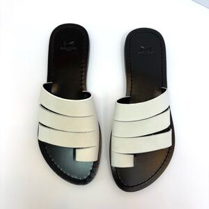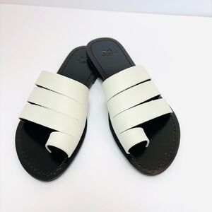Marc Fisher LTD Rilee Strappy Flat Slide Leather Sandal White Size 6.5 NEW