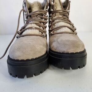 Marc Fisher LTD Suede Lug Sole Hiking Boot Size 8 Nairy Faux Fur Ankle Boot