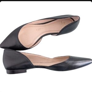 Black leather pointed toe flats with elegant d'Orsay cut-out design. These versatile Marc Fisher Sunny flats are in excellent pre-owned condition and perfect for both office wear and casual outings.