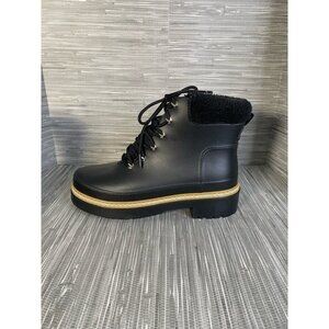 Marc Fisher Ltd Womens Fairly Winter Boots Black Fur Trim Ankle Lace Up 10 M New