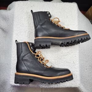 Thick treaded soles and a double lace detail take this hiking boot to the next level. Izzie features a thick, treaded sole and shearling accents.