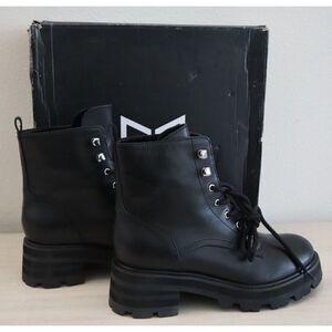 Marc Fisher LTD Women's Sz 8M Black Mllucien Leather Lug Sole Ankle Boots